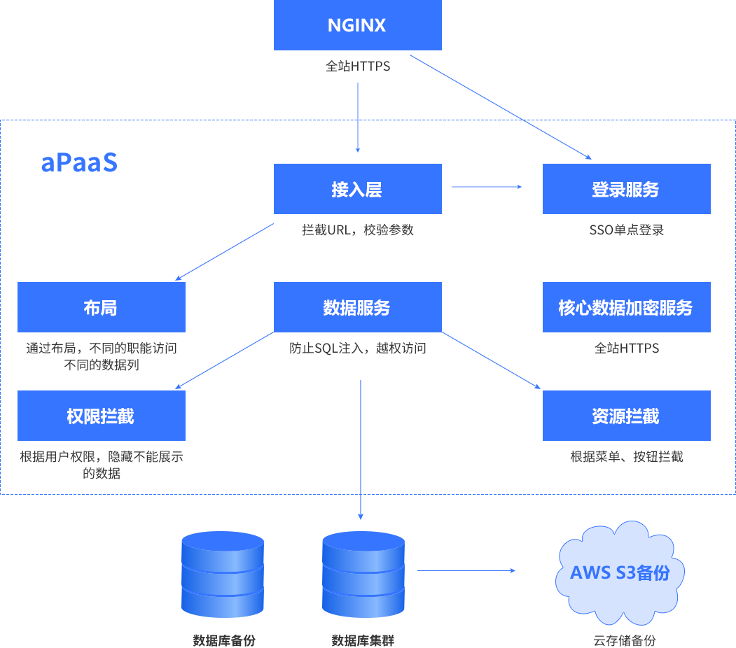 数据安全、、、、传输安全、、、灾备防控、、、日志体系、、、鉴权机制等全方位安全保障