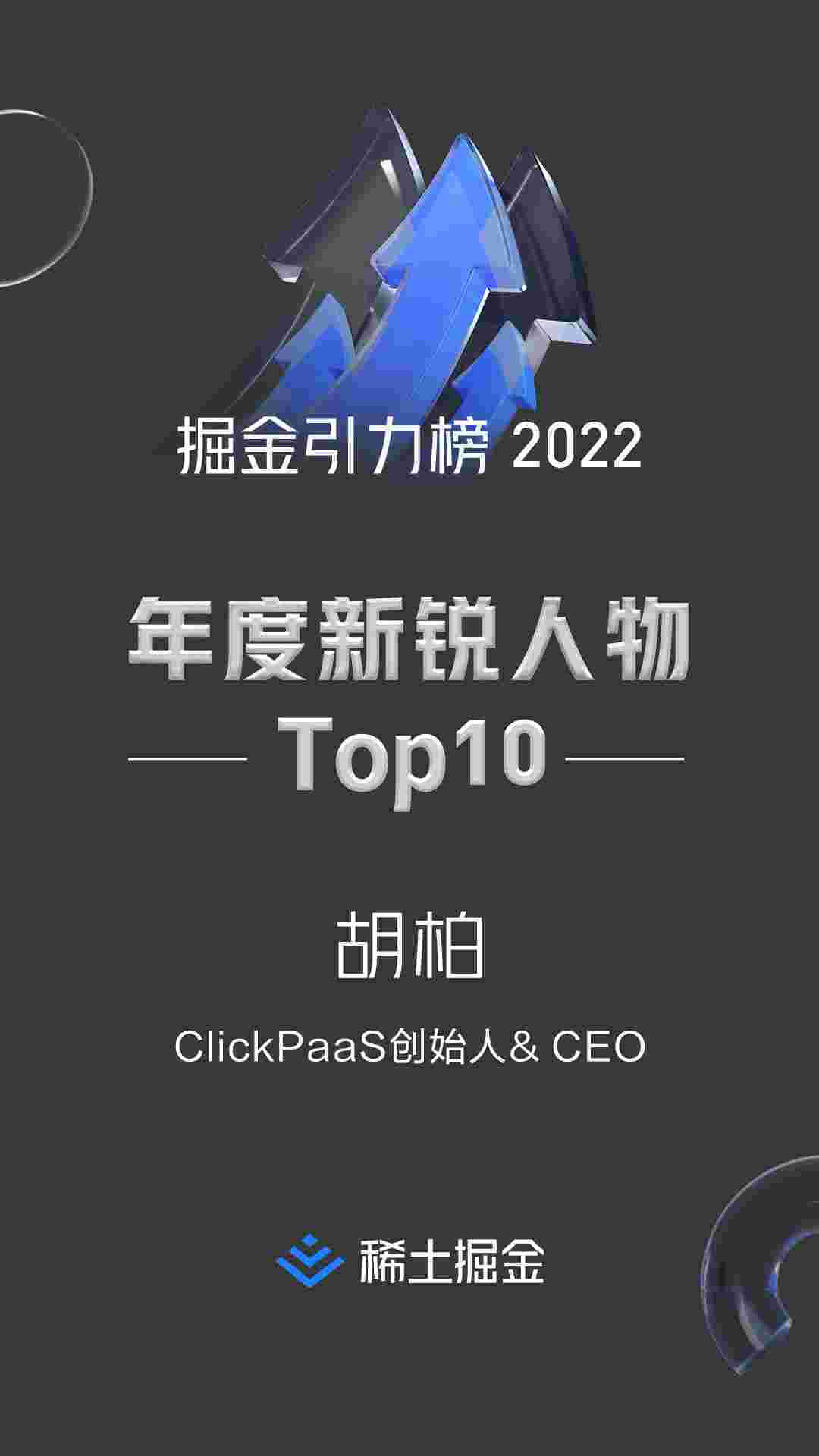 稀土掘金社区首届年度10大新锐人物榜单揭晓——钱能钱包创始人、、CEO胡柏实力登榜
